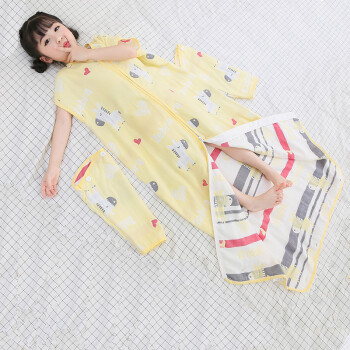 Zero Zero Pig Pure Cotton Gauze Baby Children's Sleeping Bag Summer Spring and Autumn Thin Primary School, Middle and Big School Children's Kick Proof Quilt God Tool Six Layer Yellow Zebra (20-25 degrees, 145 degrees, 6-12 years old)